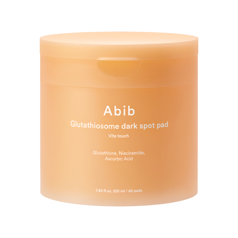 Abib’s Glutathiosome Dark Spot Pad Vita Touch effectively brightens dark spots and pigmentation while softening rough texture and delivering soothing hydration.