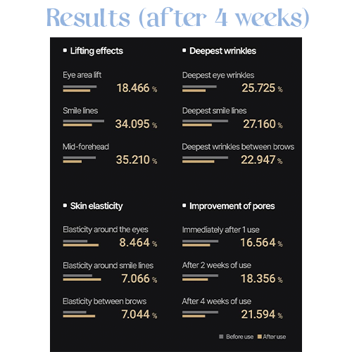 These patches are infused with a youth-boosting cocktail of Retinol, Peptides and Vitamin C to support collagen production and promote improved elasticity. skin looks and feels plumped after just one use.