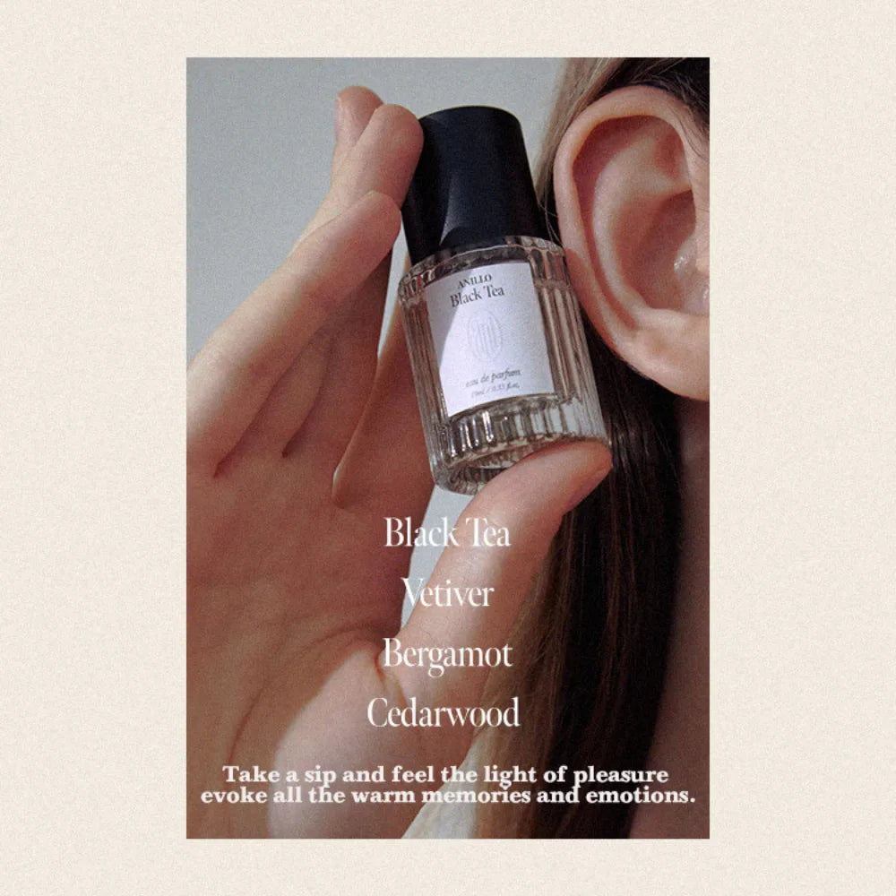 anillO’s Black Tea Eau De Parfum blends the smoothness of tea with earthy herbs and woods, wrapping you in grounded serenity.