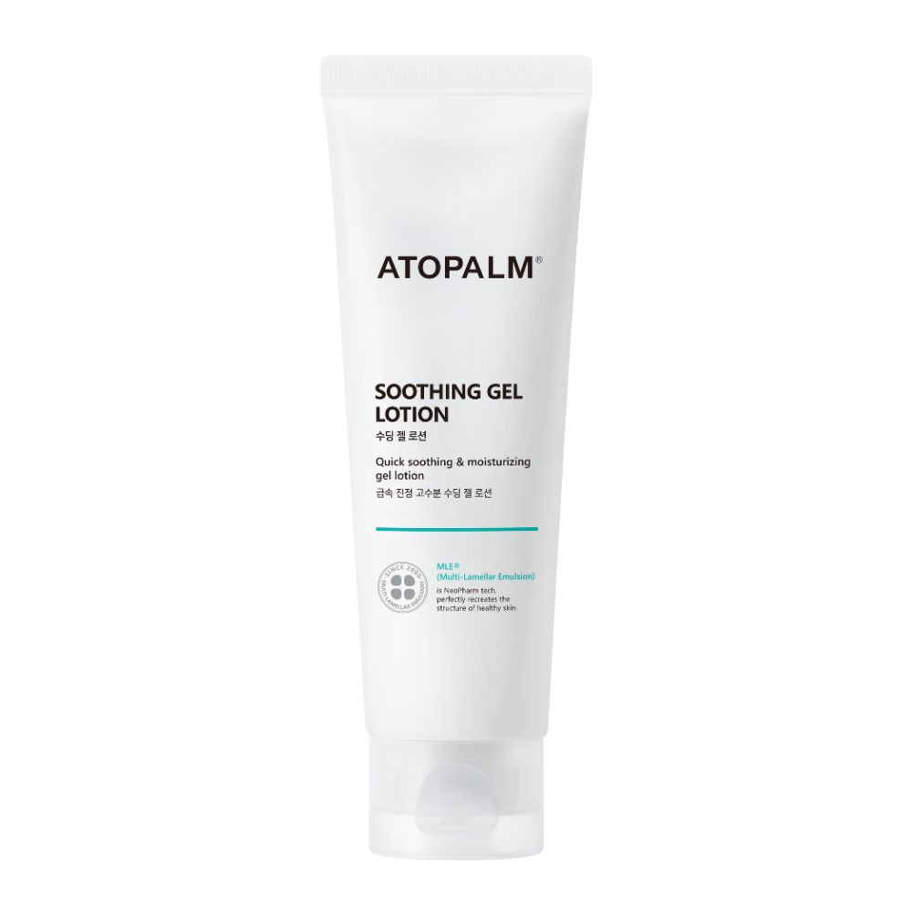 Atopalm's Soothing Gel Lotion calms and hydrates with its lightweight, non-greasy formula that absorbs quickly into the skin.
