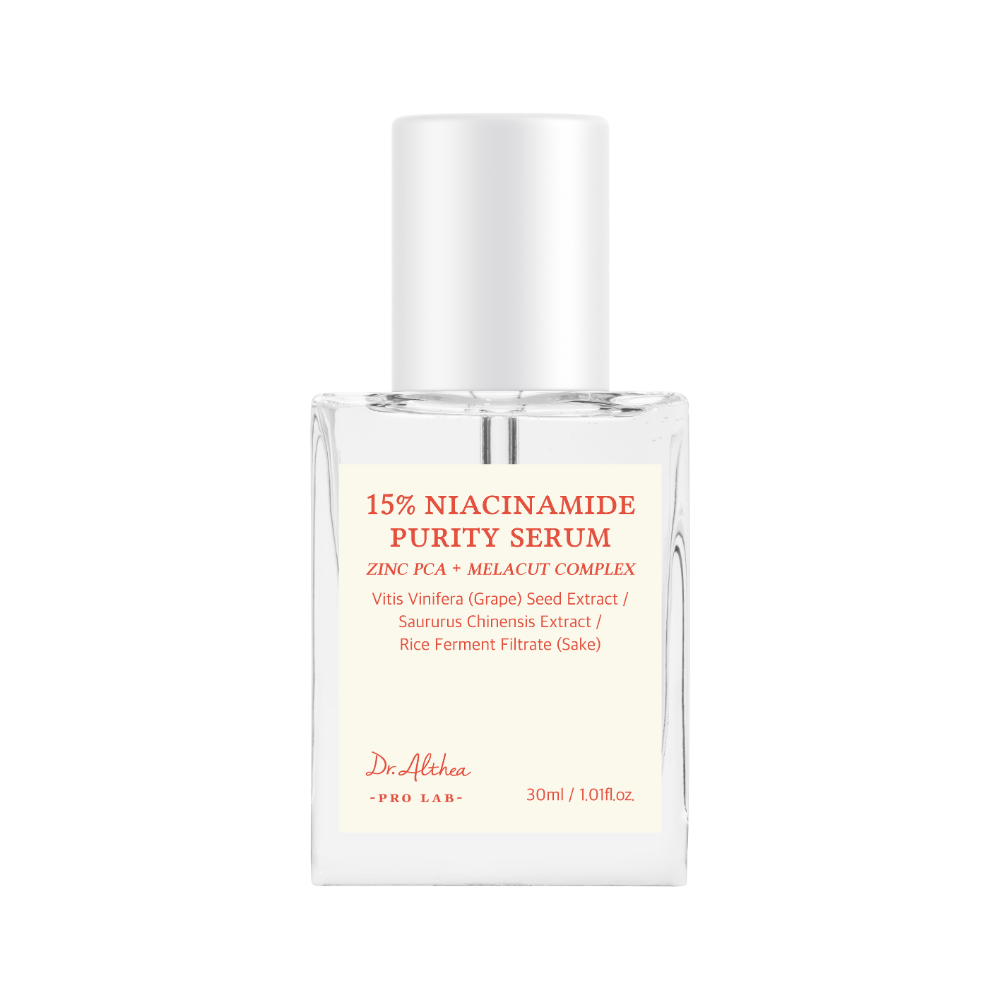 Dr. Althea’s 15% Niacinamide Purity Serum is your go-to for brightening and pore tightening care, packed with a powerful 15% concentration of niacinamide to visibly even skin tone and texture.