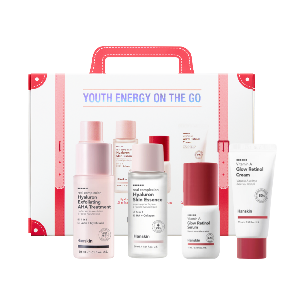 Revive your skin's radiance and elasticity with Hanskin's latest Youth Energy On The Go Kit. This mini set introduces their newest Vitamin A Glow Retinol line alongside their bestselling glow-boosting products, ensuring your skin feels bouncier, softer, and firmer than ever before!