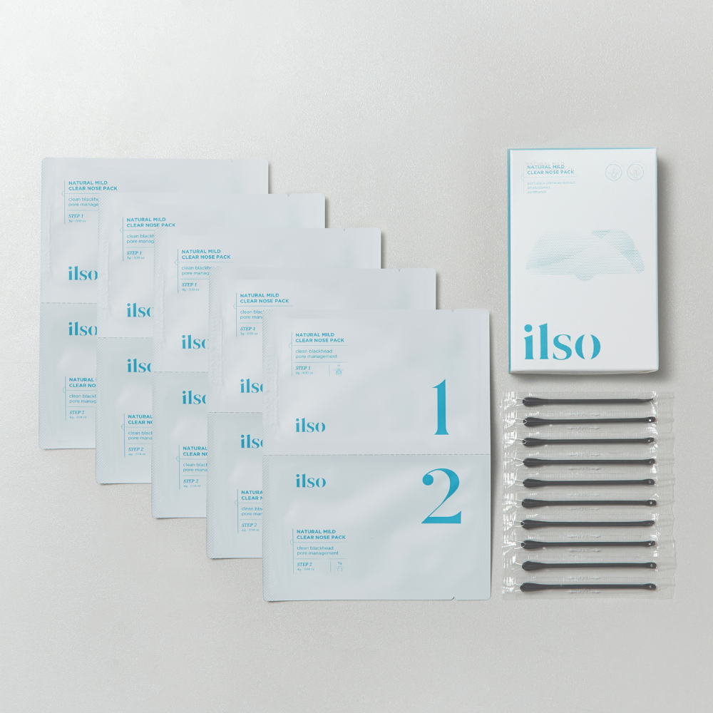 ilso’s Natural Mild Clear Nose Patch Box is a 2-step nose pack perfect for targeted blackhead and pore care.