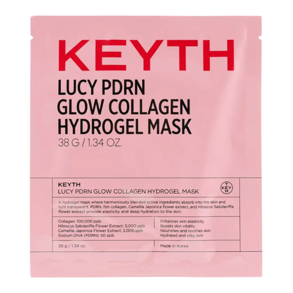 KEYTH’s Lucy PDRN Glow Collagen Hydrogel Mask boosts elasticity and softens rough texture, improving the look of fine lines with each use.