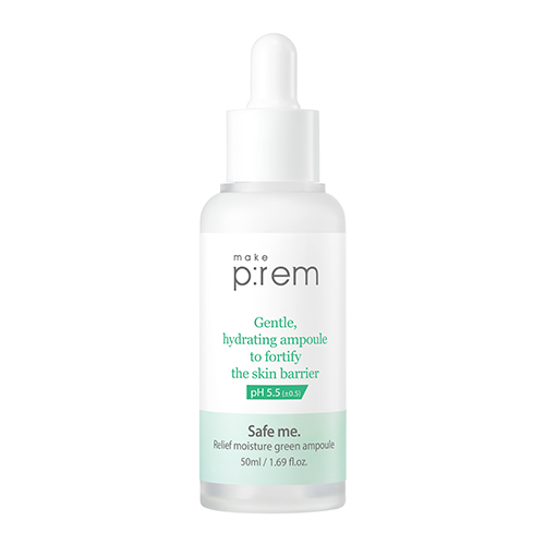 The Safe Me. Relief Moisture Green Ampoule is a milky moisture-rich ampoule designed to fortify your skin barrier and restore elasticity. Powered by a soothing blend of 20% Propanediol, Green Propolis, and anti-oxidants to leave skin feeling calmer and plumped with moisture.