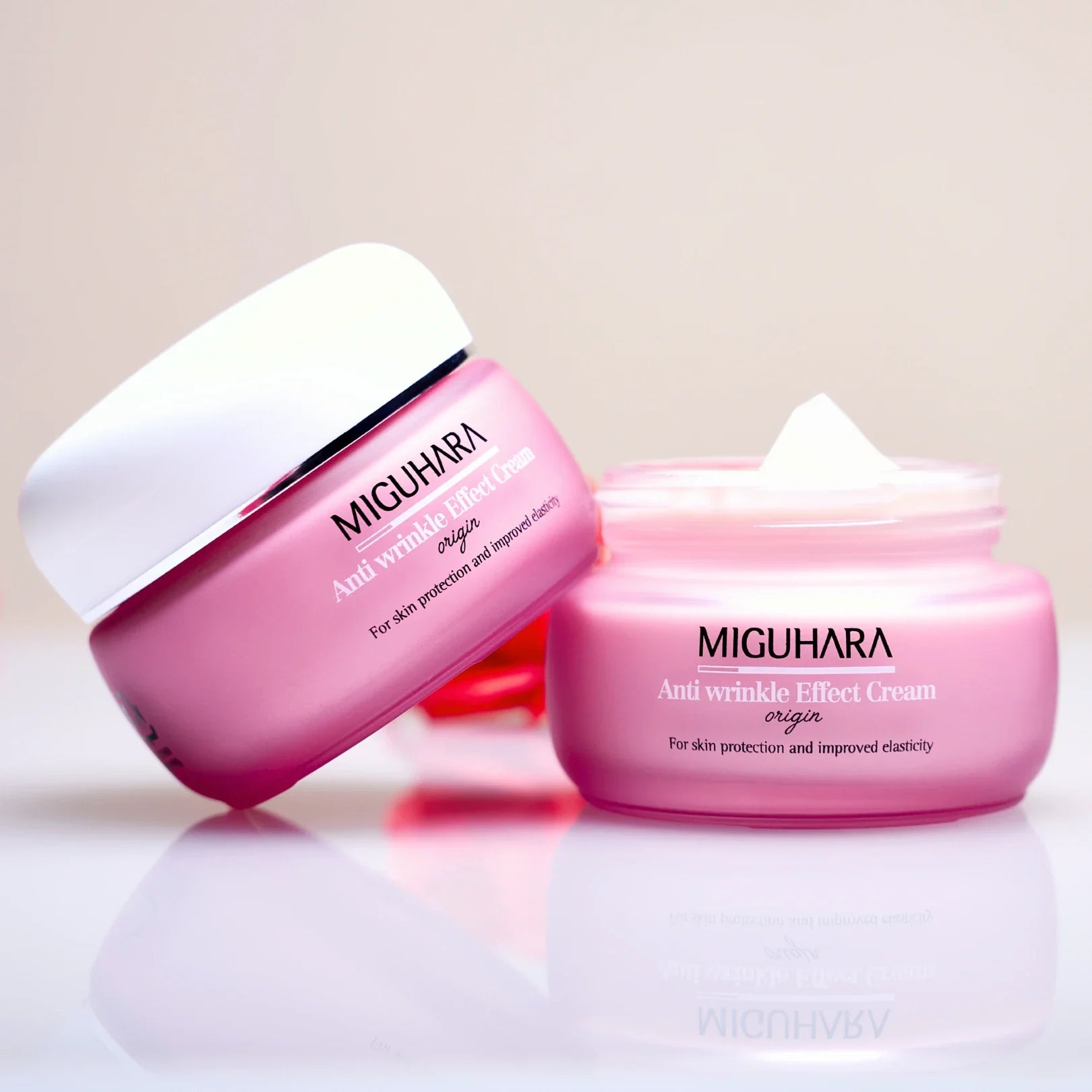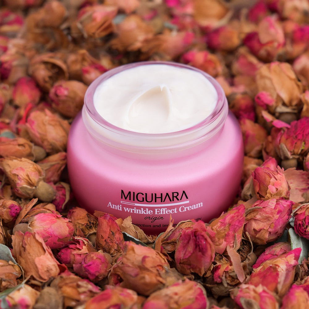 MIGUHARA's Anti Wrinkle Effect Cream Origin is packed with plumping ingredients to restore elasticity, nourish, and provide intensive well-ageing care.