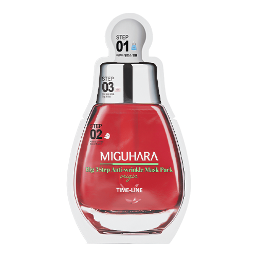 MIGUHARA's Big 3 Step Anti Wrinkle Mask Pack Origin is a 3 step all-in-one treatment sheet mask pack packed with powerful anti-aging ingredients to restore skin elasticity, while also providing intensive dual moisture and wrinkle care.