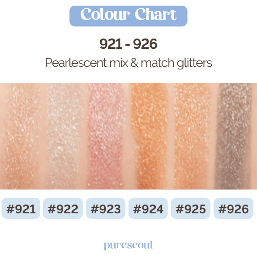 - #921 - #926: Gorgeous multi dimensional glitters that work perfectly on top of the mattes or on their own as the star of the show.