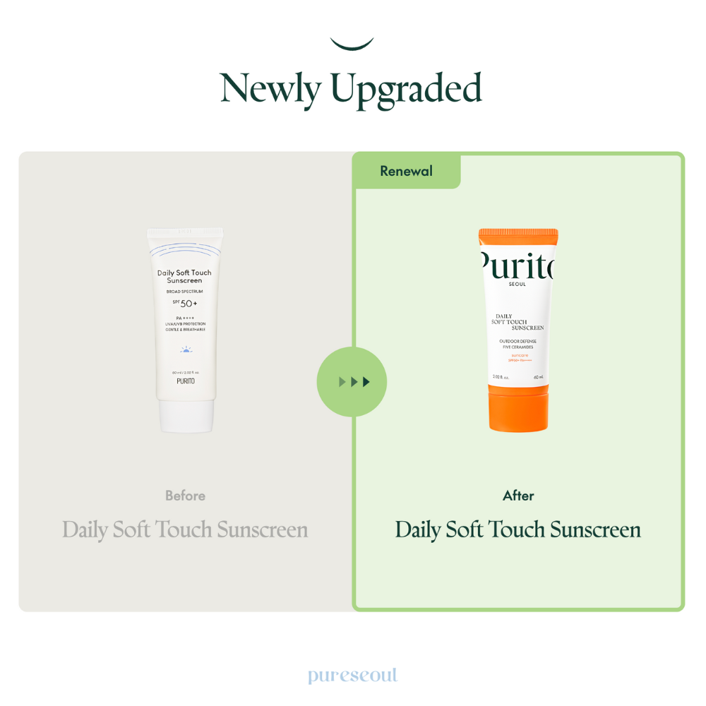 Purito SEOUL's upgraded Daily Soft Touch Sunscreen is a breathable broad-spectrum SPF, designed with a semi-matte finish to deliver the perfect balance of sebum control and moisture for oily-combination skin types