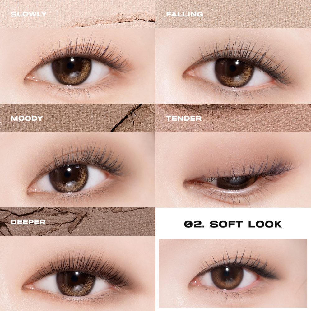 #02 Soft features a group of muted browns for a soft, natural look that seamlessly blends into your daily makeup.