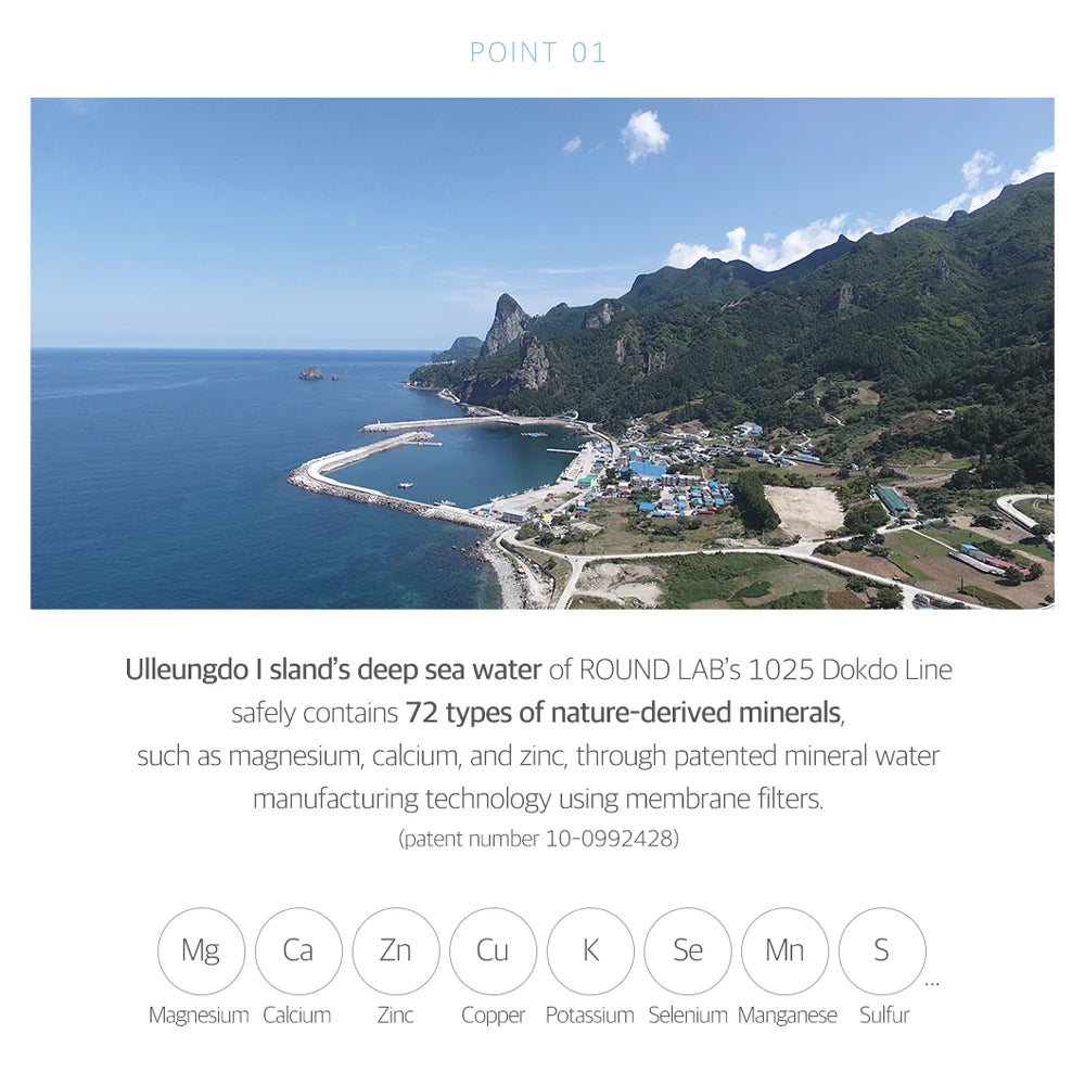 Round Lab's signature 1025 Dokdo line is powered by Deep Sea Water, sourced between the islands of Ulleungdo and Dokdo to deliver a surge of hydration. This marine medley is boosted by a 5 Ceramide-complex and triple-layered Hyaluronic acid to lock in moisture for a smooth, plump complexion.