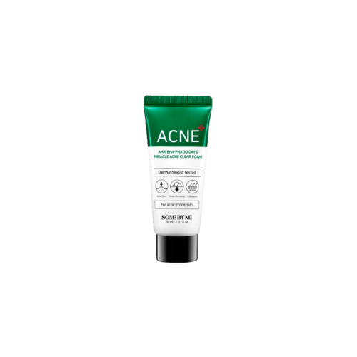 Now in a mini size, perfect for travel - this AHA-BHA-PHA 30 Days Miracle Acne Clear Foam is a purifying facial wash from acne experts SOME BY MI. Designed to cleanse the skin, balance oils, and control breakouts all in one quick cleansing step.