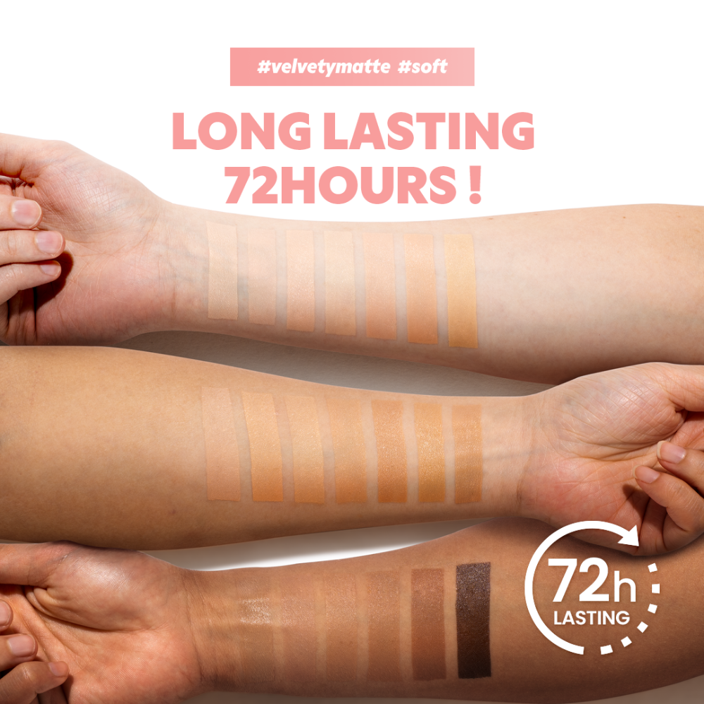 Powered by a unique 2-step coating technology, the foundation adheres seamlessly to the skin, resisting transfer while maintaining a flawless finish all day. It's buildable formula effortlessly conceals redness, pigmentation, and uneven texture, while a hydrating blend of hyaluronic acid and nourishing botanical extracts keeps the skin plump, soft, and comfortable.