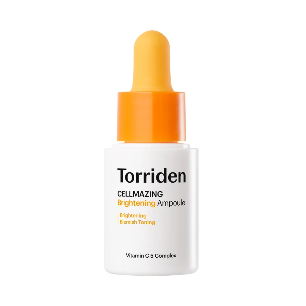 Torriden’s mini Cellmazing Vita Brightening Ampoule effectively brightens dark marks, acne scarring and stubborn pigmentation for a more even, radiant complexion.