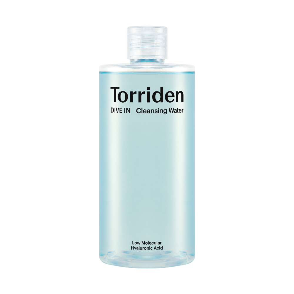 Torriden's DIVE-IN Low Molecular Hyaluronic Acid Cleansing Water is a hydration-first makeup remover that gently dissolves daily impurities yet leaves a soothed and refreshed finish.